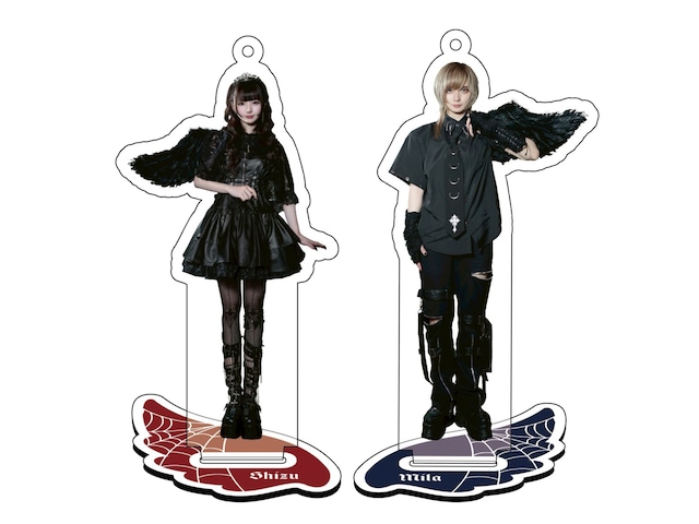 「1人では片翼…。2人なら両翼!」になるアクリルスタンドの漆黒の羽verです♡ なんとこちらの商品、キーホルダーにもなっちゃいます!便利!! 台座は蜘蛛の巣&お名前入りでとっても豪華。