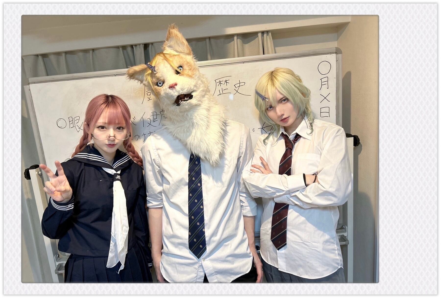 チャラ男風ミラ様と真面目風しずりんと不良ネコさんのチェキです。